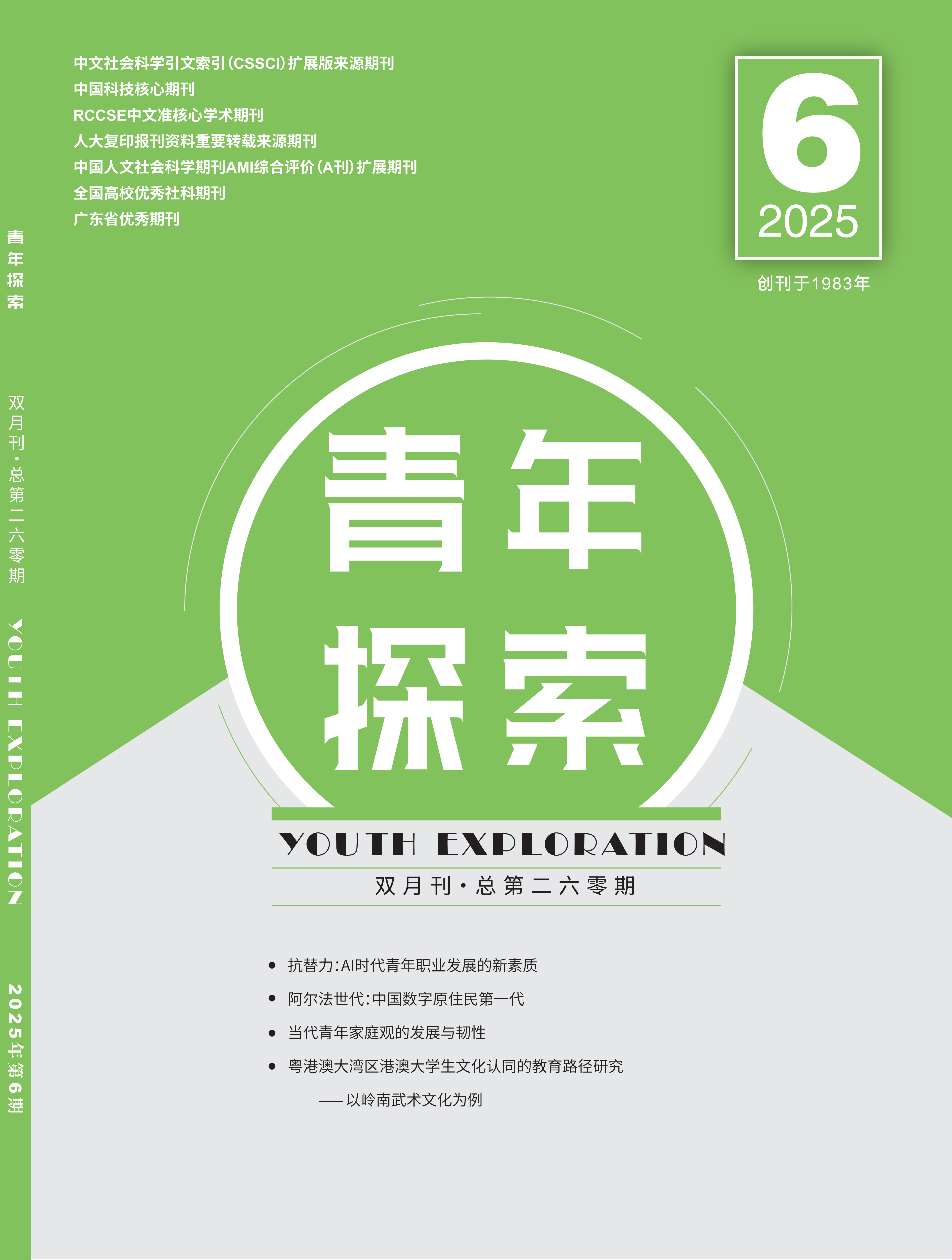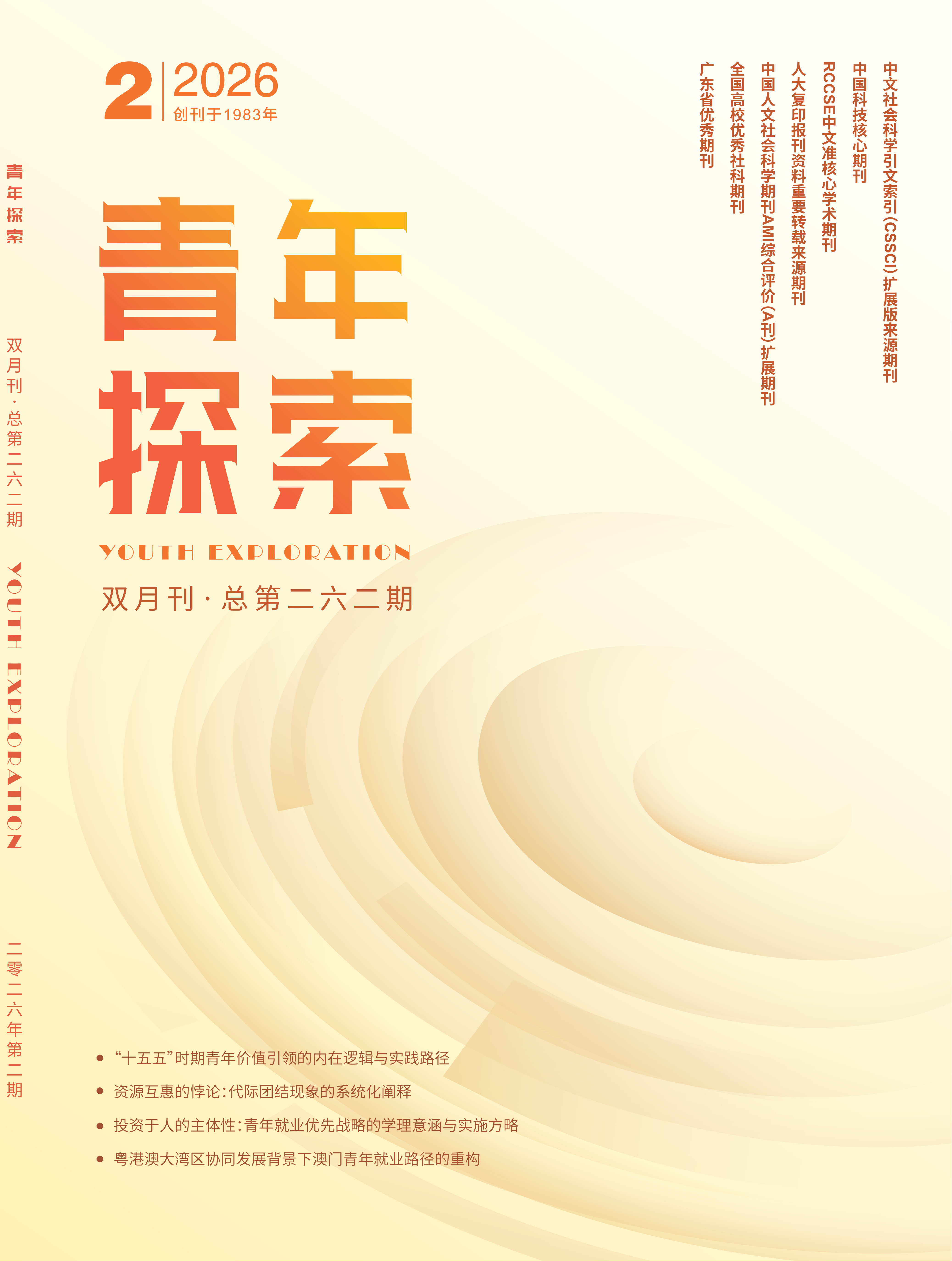 《青年探索》(双月刊)创刊于 1993 年,在共青团工作研究及青年研究领域一直享有盛誉。 入选中文社会科学引文索引扩展版来源期刊、中国人文社会科学扩展期刊、中国科技核心期刊、RCCSE 中文核心学术期刊、人大复印报刊资料重要转载来源期刊。本刊坚持学术理论研究和探索青年社会实际问题的办刊宗旨和风格,已成为全国观察青年、研究青年、反映青年、服务青年的权威窗口。